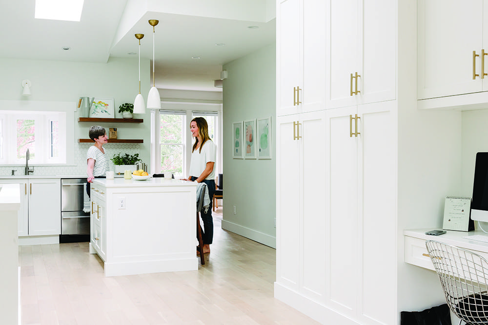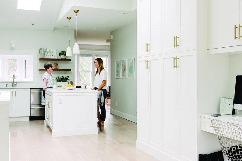 As is often anticipated with older homes, challenges arose when the contractor began taking down walls. When removing the existing pantry to create the open concept area, the homeowners discovered it was a crucial structural component. This development resulted in them having to hire a structural engineer to redesign the entire roof plan. “What started out as a setback ended up being a ‘happy surprise,’” says Billinghurst with a laugh. “We needed to increase the ceiling height, which ended up enhancing the overall space as a result.”